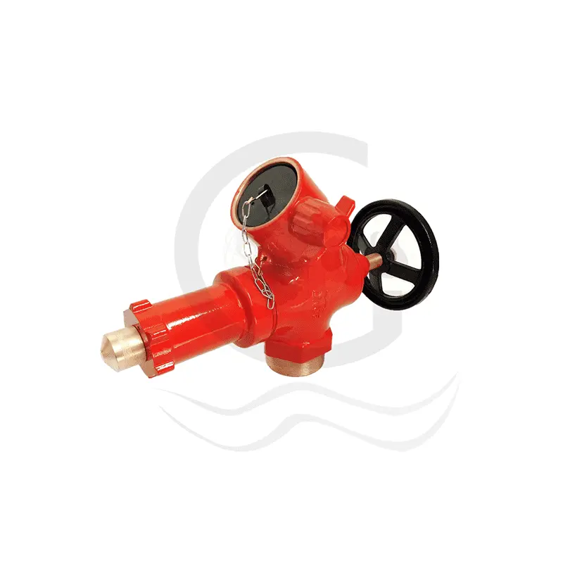 E type pressure reducing valve is a type of pressure regulating hydrant valve. These valves are available with flanged inlet or screwed inlet and are manufactured to comply to BS 5041 Part 1 standard with delivery hose connection and blank cap complying with BS 336:2010